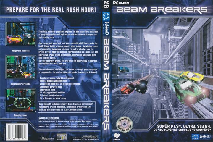 لعبة Beam Breakers هي واحدة من ألعاب السباقات المستقبلية اللي كانت بتحاول تسبق زمنها حرفيًا، لأنها مش بتقدم سباق سيارات على الأرض… بل بتدخلك في سباقات سيارات طائرة مضادة للجاذبية داخل نيويورك مستقبلية مليانة أبراج وإضاءات سايبربانك وزحمة جوية ثلاثية الأبعاد. تخيل كده إنك بتسوق عربية طايرة وسط حركة مرور في السماء، والطرق مش طرق… دي “مسارات ضوئية” اسمها Guide Beams بتنظم السير فوق المدينة.
